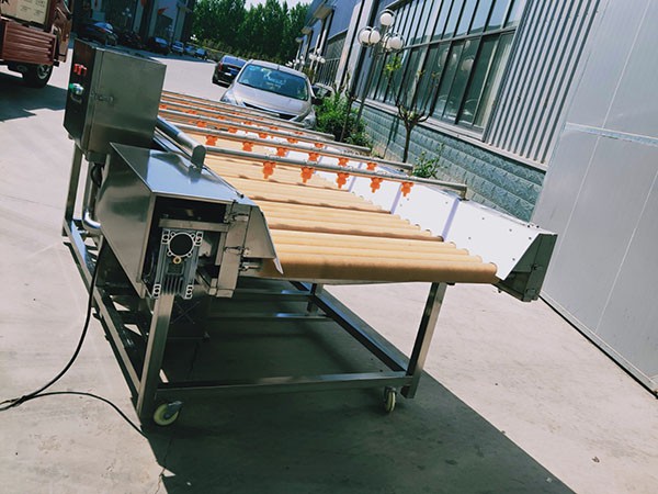 本机适合于草莓、土豆、胡萝卜、芋籽、等不许损伤表皮的球状(圆柱状)果蔬,下部采用毛刷将物料表面刷干净,上部有高压喷淋清洗,前段采用循环水,后端采用净水,果蔬清洗彻底且节约用水。
