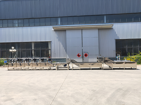 该巴氏杀菌线分杀菌和冷却两部分,通过链条的不断运转,带动被杀菌物进入槽内连续作业,适用于酱菜、低温肉制品、果汁、果冻及各类饮料的自动化连续巴氏杀菌,也可用于蔬菜的漂烫处理。