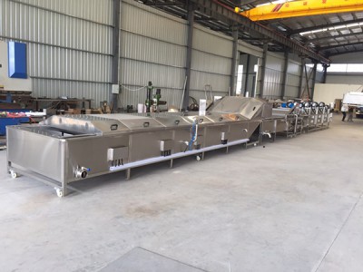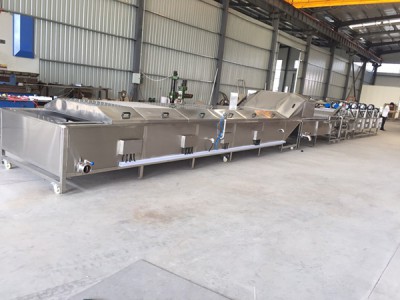 该巴氏杀菌线分杀菌和冷却两部分,通过链条的不断运转,带动被杀菌物进入槽内连续作业,适用于酱菜、低温肉制品、果汁、果冻及各类饮料的自动化连续巴氏杀菌,也可用于蔬菜的漂烫处理。
